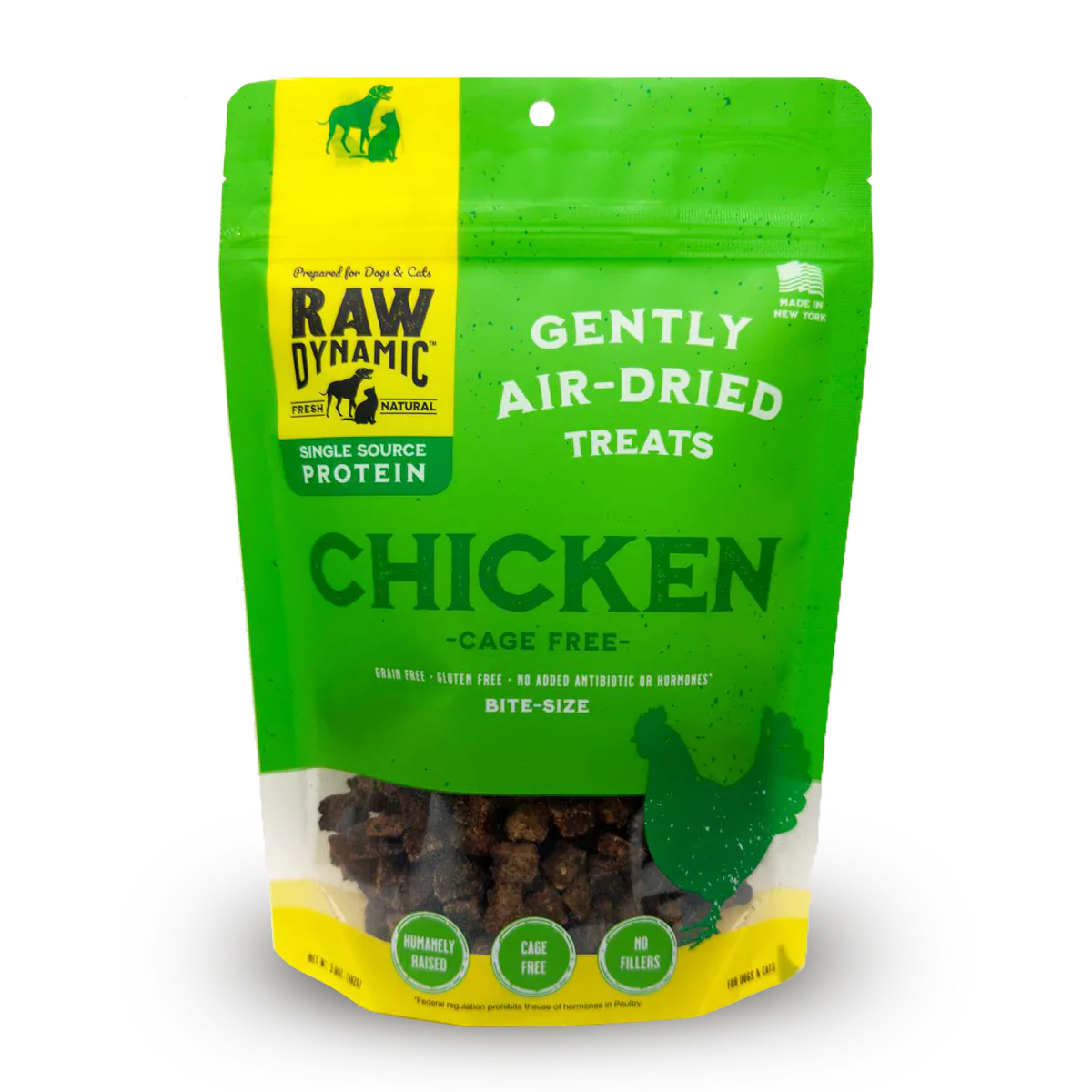 Our treats consist of single-sourced proteins with limited ingredients. These air-dried treats have a crunchy texture, making them easy to use and palatable for dogs and cats!